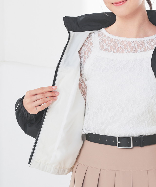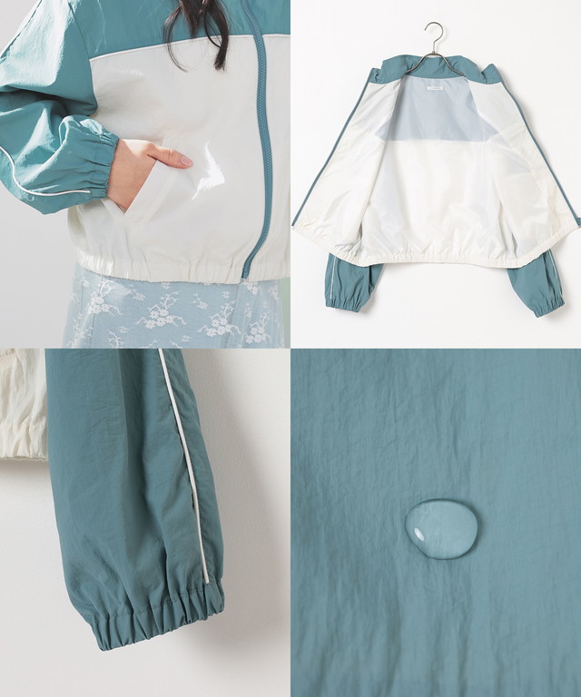 アウター ジャンパー ブルゾン ジャケット 長袖 はっ水 撥水加工 配色 無地 裏地 レディース 雑誌掲載 SALE セール Honeys ハニーズ 撥水加工配色ブルゾン