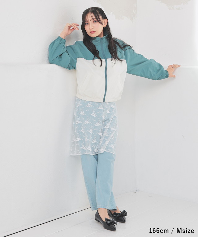 ファスナーを開けて羽織っても、閉めてトップス風に着こなすのも◎