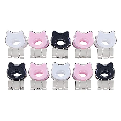 Yi Concept 猫型 ミディアム ペーパークリップ バインダークリップ 握りやすい アソートカラー 学校事務用品 10個セット