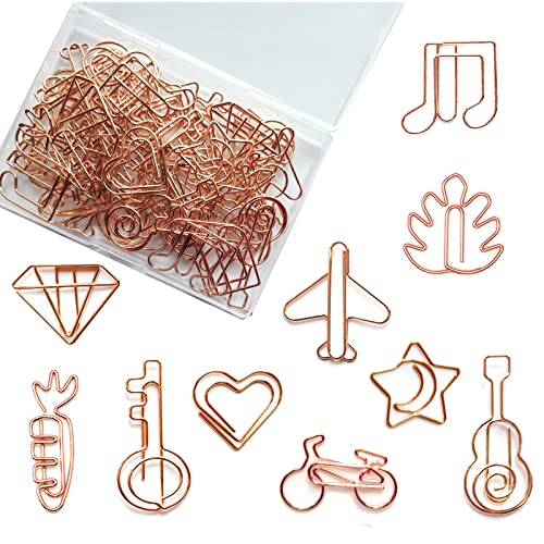 5WYOUKE ゼムクリップ 50枚セットペーパークリップ クリップ 可愛い ギター ハート 月星 自転車 飛行機 ブックマーク 金属製 書類整理/招待状/付箋/手紙/メモ帳用 文房具 事務用品 メモクリップ 10種類 収納ケース付き