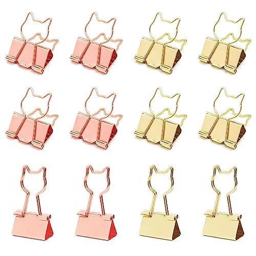 猫型 ダブルクリップ 小 19mm 12個入り ネコデザイン クリップ ペーパークリップ 金属製 書類整理 事務用品 オフィス かわいい (ローズゴールド+ゴールド)
