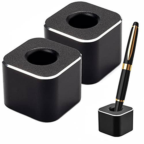 OneLeaf ペン立て おしゃれ ペンスタンド 筆差し ペンたて ペンホルダー ぺんおき 万年筆立て 鉛筆立て ボールペン立て デスクペン立て アルミ合金 滑り止め 使いやすい オフィス 会議室 受付 自室用 (ブラック 16mm2パッ