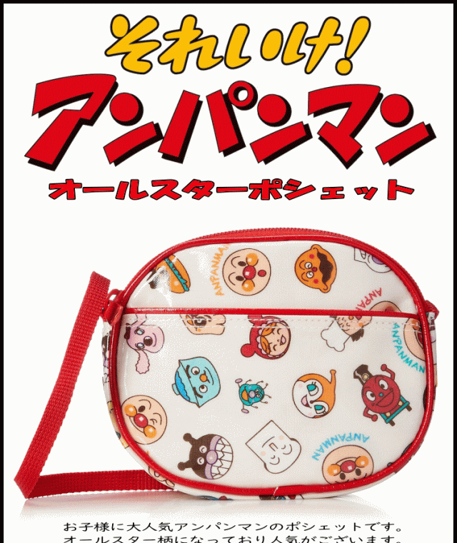 ポシェット アンパンマン ANC-1803 オールスター柄 ドキンちゃん ばいきんまん コキンちゃん だだんだん メロンパンナちゃん ポーチ ショルダーバッグ