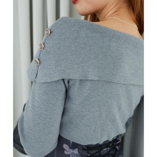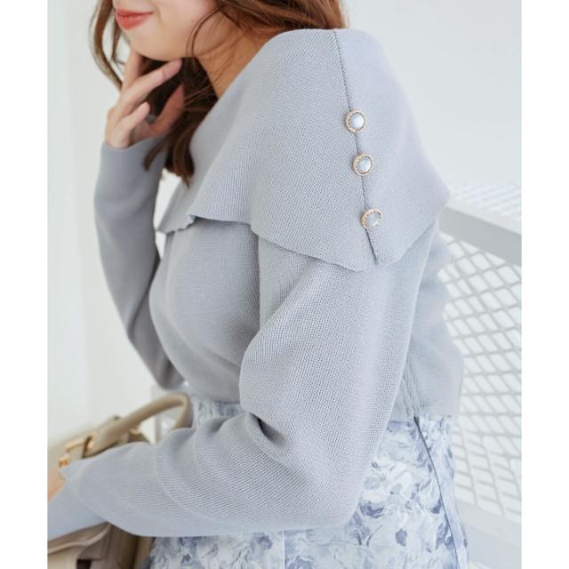 肩スリットの上にボタンをあしらったことで、顔周りも華やかに。