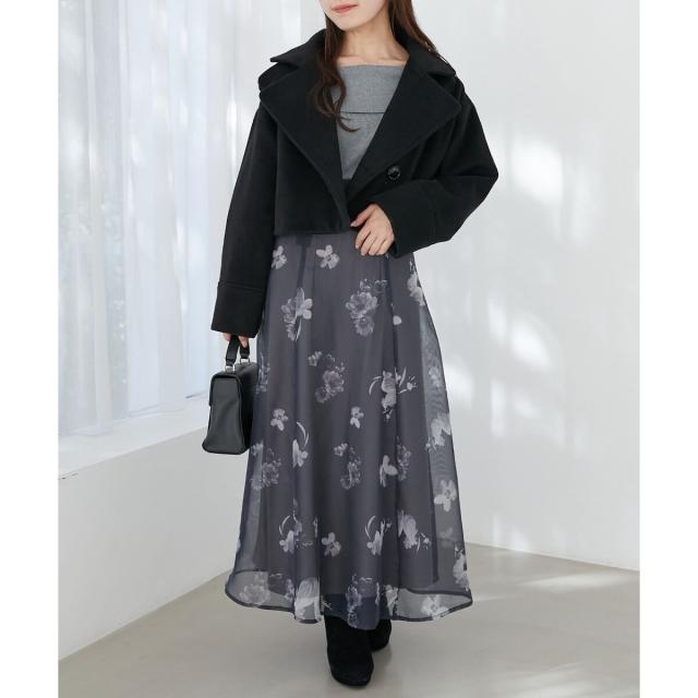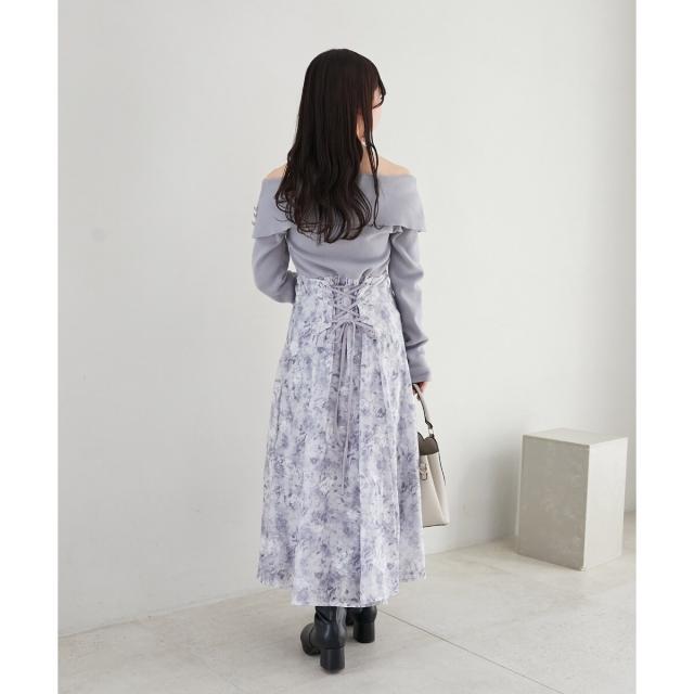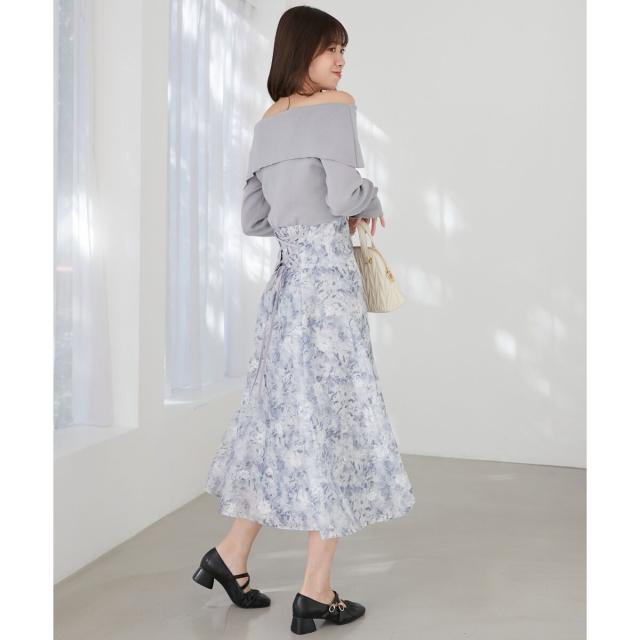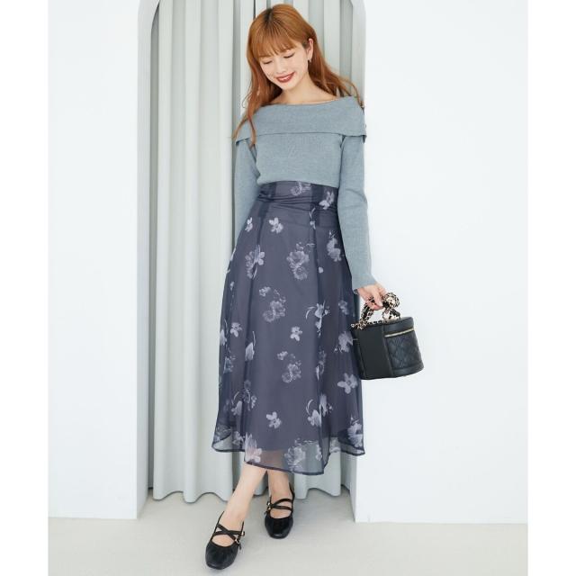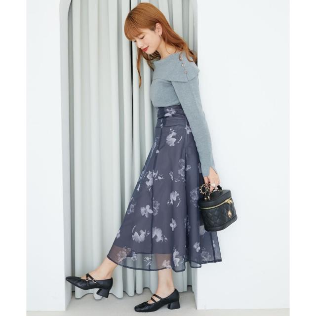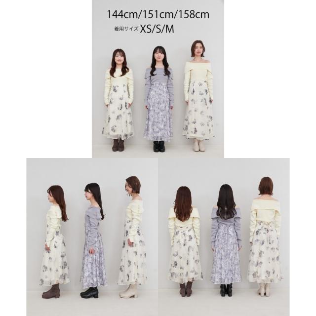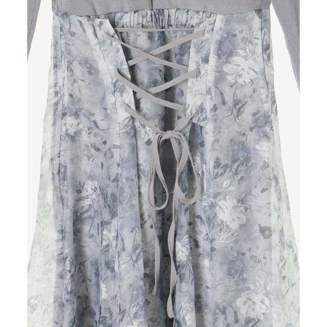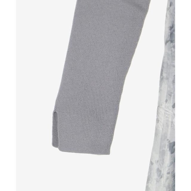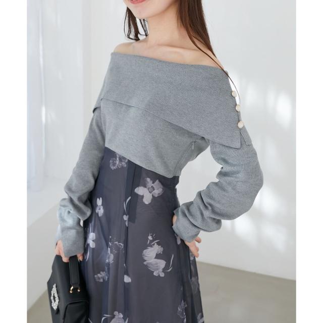 ハイゲージニットの身頃と軽い布帛のスカートをドッキングさせた、メリハリのあるデザインが女性らしさを惹きたてます。