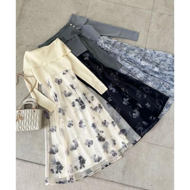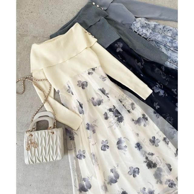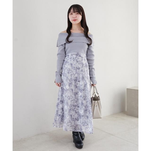 フラワーオフショルドッキングワンピ