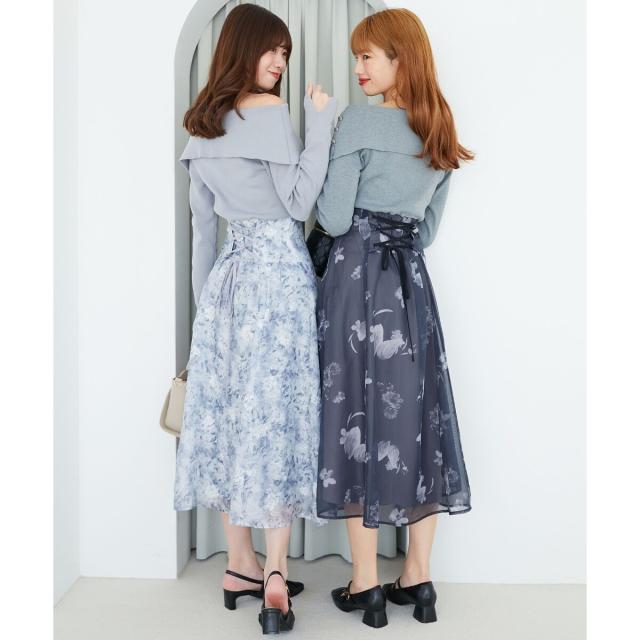 後ろウエストはゴム+レースアップ仕様で、ウエストラインをきれいに見せる上に体型に合わせて調節できるのも嬉しいポイント。