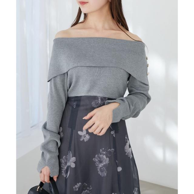 デコルテを美しくみせるオフショルダーは、適度な肌見せでコーデに抜け感をプラス。