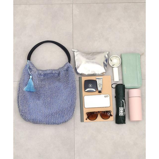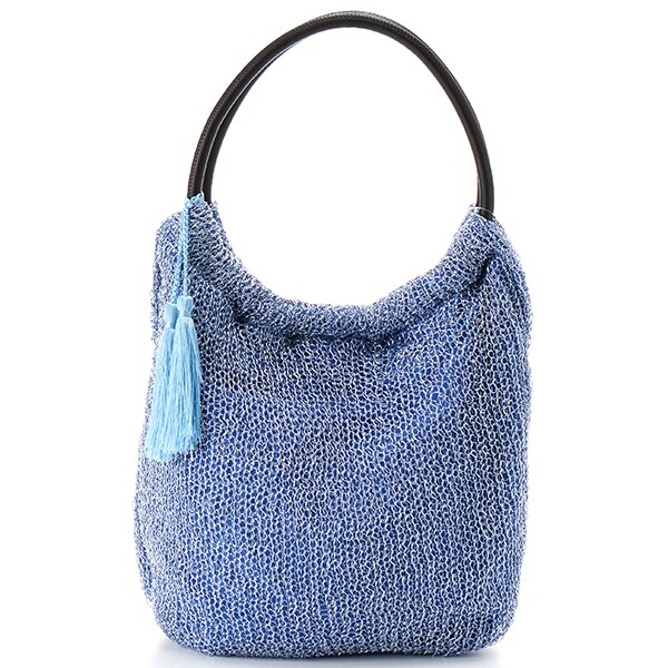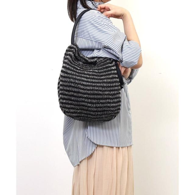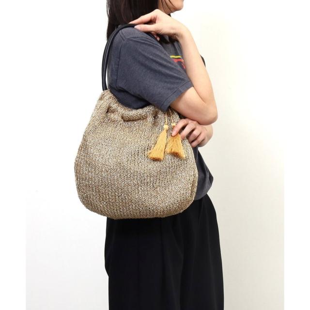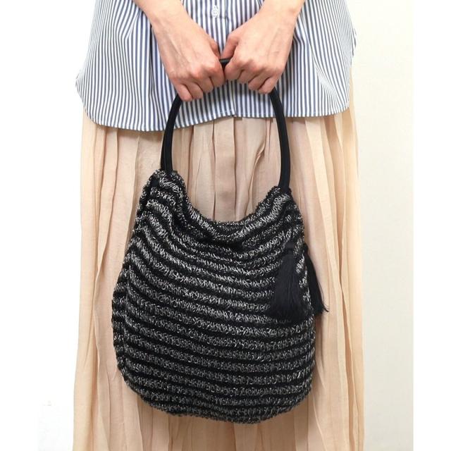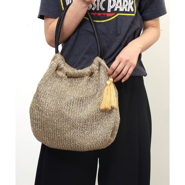 メタリック糸を機械編みで編み上げたサマーバッグです。