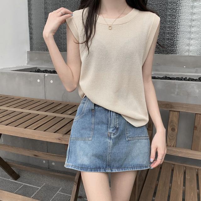 ベーシックなカラーが着回し力抜群の大人かわいいノースリーブニットトップス