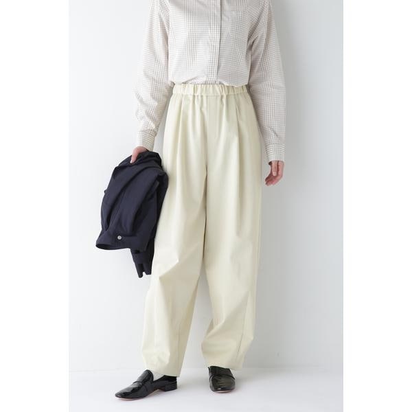 春らしいパステルな色合いが嬉しい、程よいバレルシルエットのパンツです。イージー仕様のウエストが嬉しいポイントです。