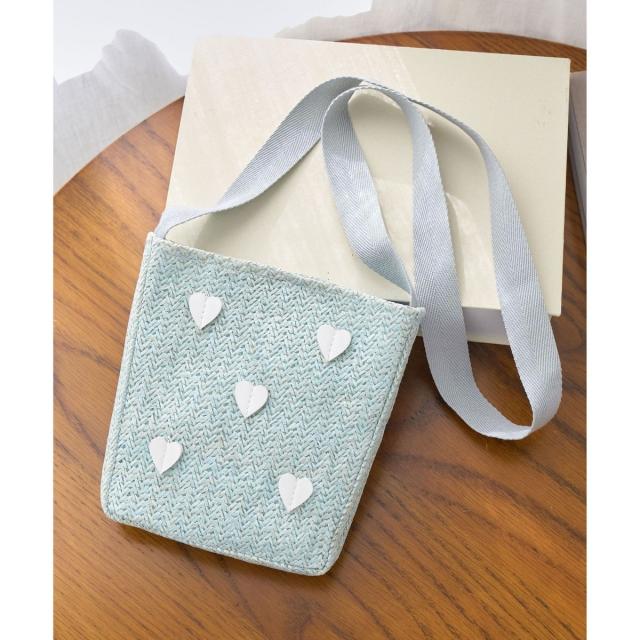 ・ストローバッグ風素材に、ハートマークをちらした可愛らしいデザイン。