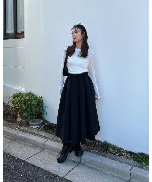 シーズンレスな素材なので、春まで着用できる万能スカートです。