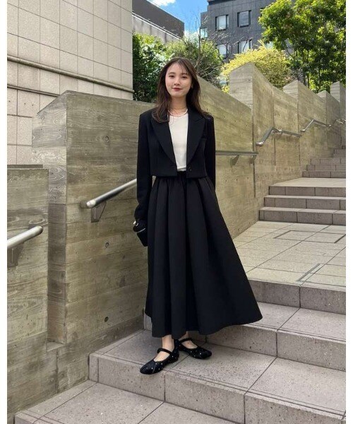 ボンディングのハリを生かしたタックボリュームスカート。