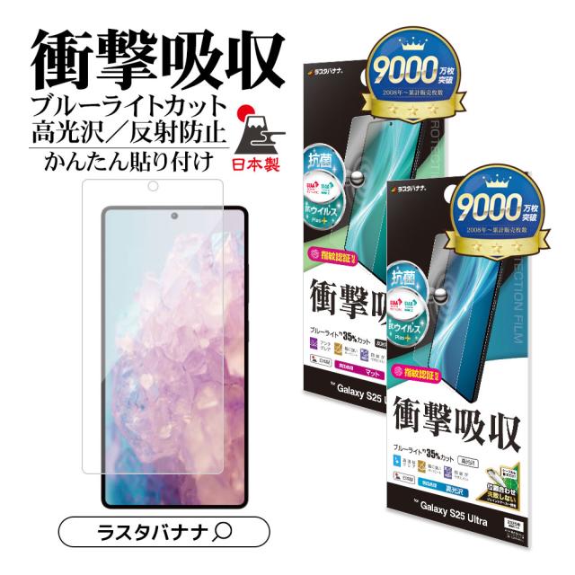 Galaxy S25 Ultra SC-52F SCG32 フィルム 全面保護 衝撃吸収 ブルーライトカット 高光沢 高透明 クリア 反射防止 アンチグレア 抗菌 抗ウィルス 日本製 貼り付けガイド ギャラクシー ウルトラ 保護フィルム ラスタバナナ