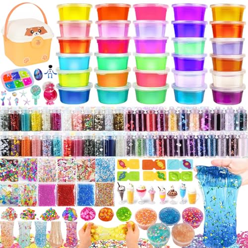 Funk Doggie スライム キット 31個粘土 DIY ねんど セット 水晶粘土 ル スパンコール 金魚鉢ビーズ 果物切片 フォームビーズ 手作りツール ストレス解消 DIY 子供 おもちゃ 小学生 男の子 女の子誕生日 クリスマス