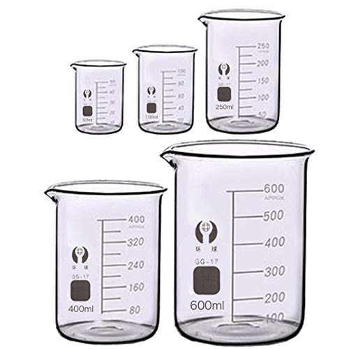 HAMILO ビーカー 実験用品 実験器具 耐熱ガラス 計量器 メジャーカップ 計量カップ ガラス製 (5種セット)
