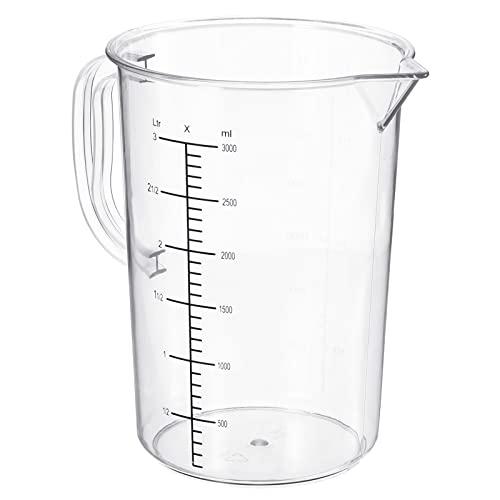 PATIKIL 目盛付きビーカー 3000ml PC プラスチック 液体計量カップ 両面目盛り ハンドルと注ぎ口付き ラボ キッチン 家庭用