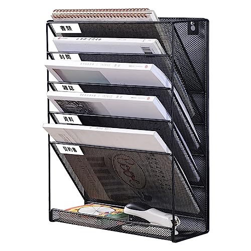 ファイルラック 6段 卓上収納 ラック 壁掛け デスク 収納 書類整理 書類トレー レタートレー 机の上収納 書類ラック 組み立て不要 新聞/雑誌/A4ファイル/フォルダー/書類入れ メッシュメタル (ブラック)