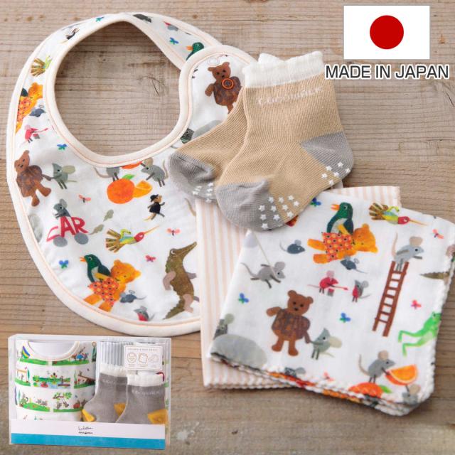 ギフトセット ソックス ギフトBOX レオレオニ 靴下 ハンカチ スタイ ( ギフト セット 出産祝い ベビー 新生児 綿 コットン プレゼント かわいい よだれかけ ミニタオル くつ下 綿100% 赤ちゃん キャラクター )