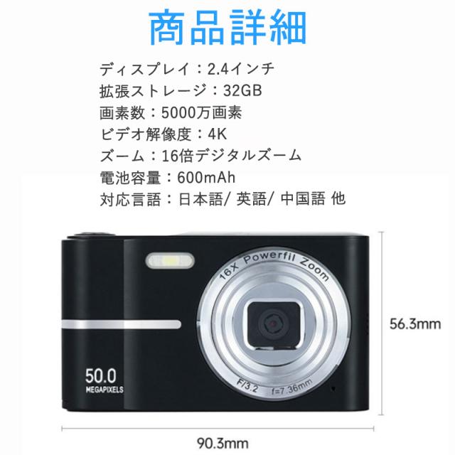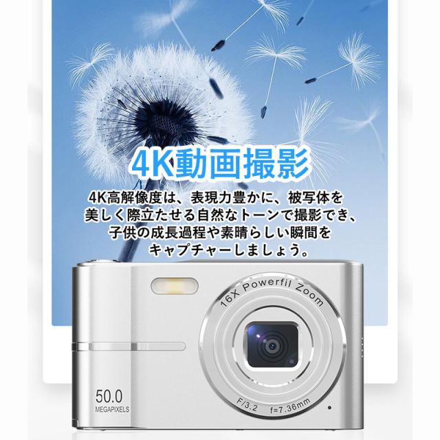 トイカメラ デジタルカメラ キッズカメラ 5000万高画素 子供用カメラ 4K動画撮影 AF 2.4インチ 16倍ズーム タイマー機能 学生 初心者