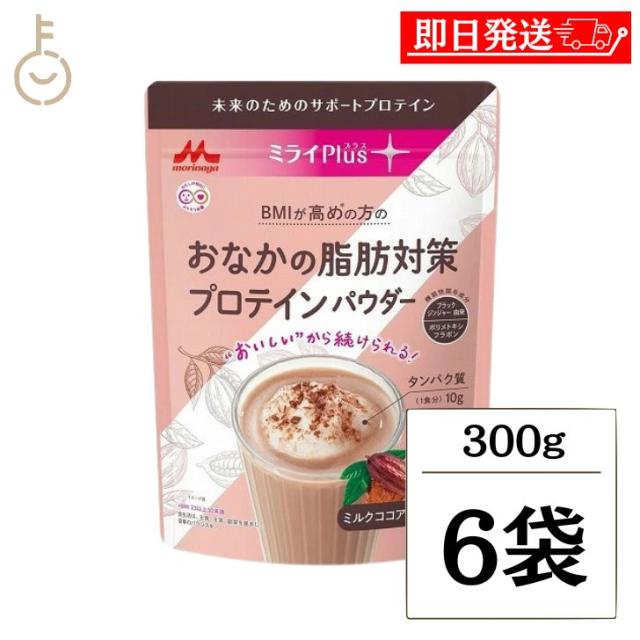 森永乳業 ミライPlus おなかの脂肪対策プロテインパウダー 300g 6袋 プロテイン ソイプロテイン 大豆プロテイン プロテインパウダー パウダー 粉末 ホエイ ソイ ココア味