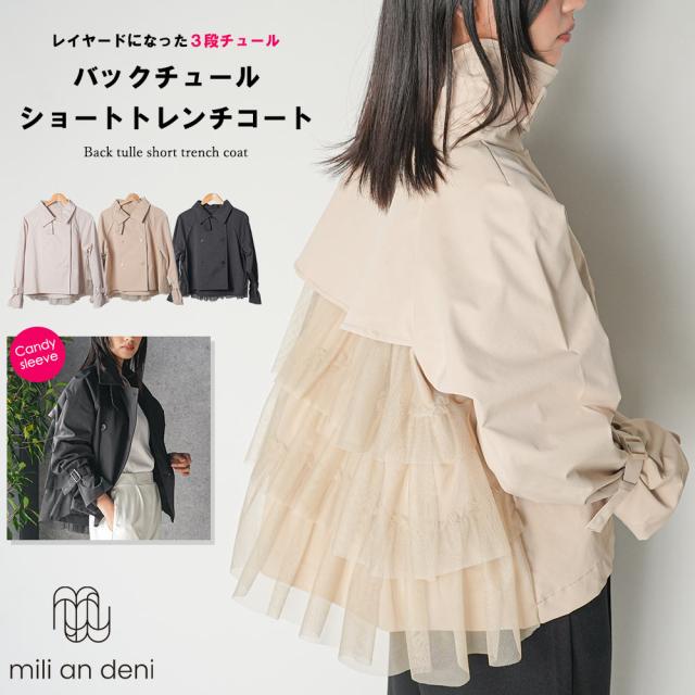 春新作 バックチュールショートトレンチコート コート 春夏 アウター ジャケット アウトドア 長袖 M レディース アウター ミリアンデニ ネコポス対応 a255001