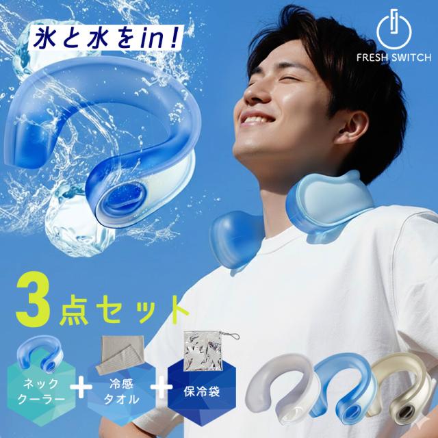 【極冷感3点セット】FRESH SWITCH 氷嚢 氷のう ネッククーラー 冷感タオル付き 保冷袋付き アイスクールリング アイスネックリング 大人 子ども 冷感 ひんやり 冷却 ネッククールリング 熱中症 暑さ対策 冷感グッズ 首 冷やす アイシング 野球 スポーツ 観戦 屋外 作業