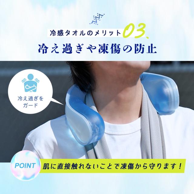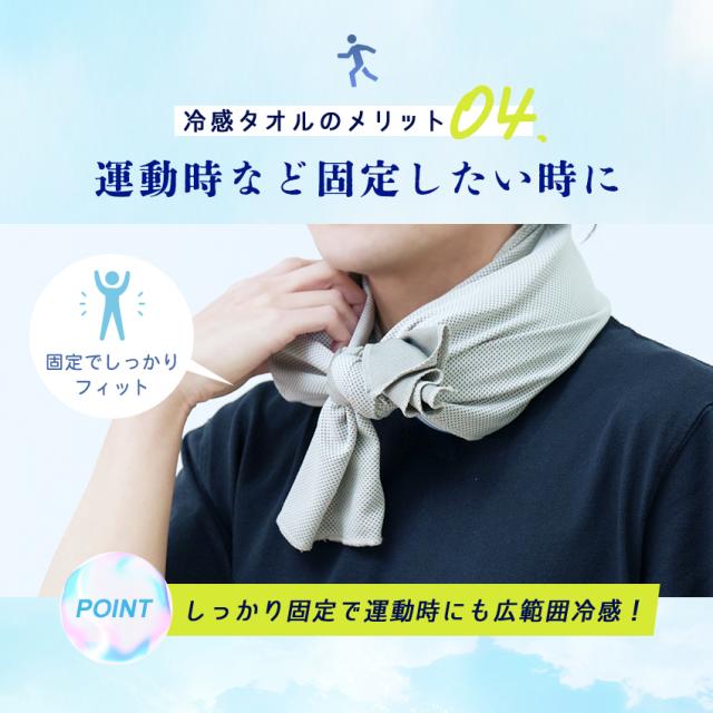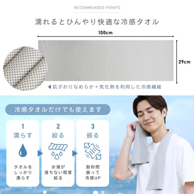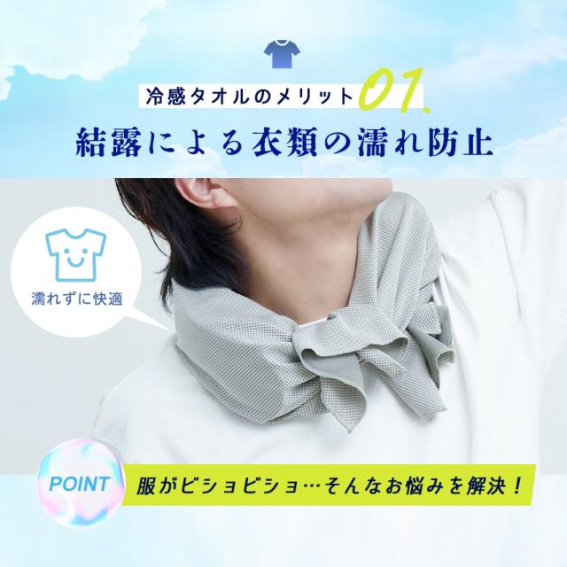 | ●濡れてひんやり快適な冷感タオル 衣類が濡れるのを防ぎしっかり固定 |