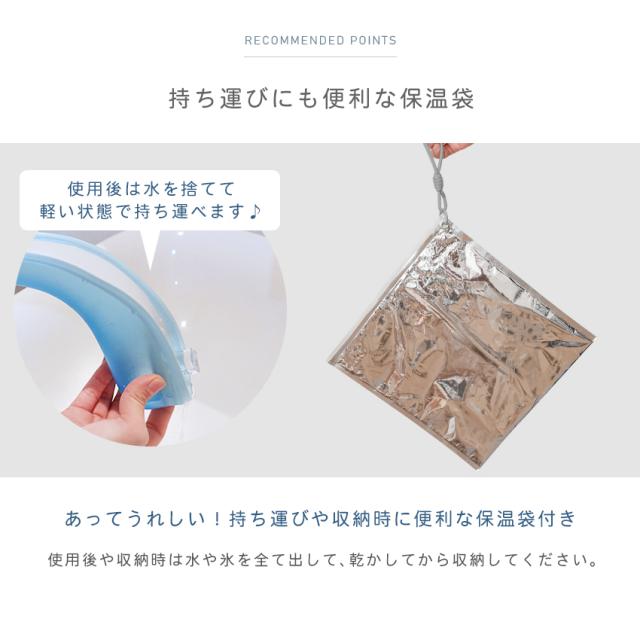 | ●持ち運びにも便利な保冷袋 使用後は乾かしてから収納してください |