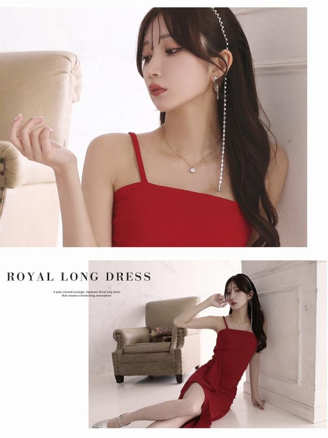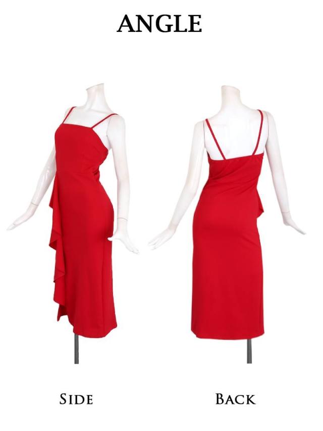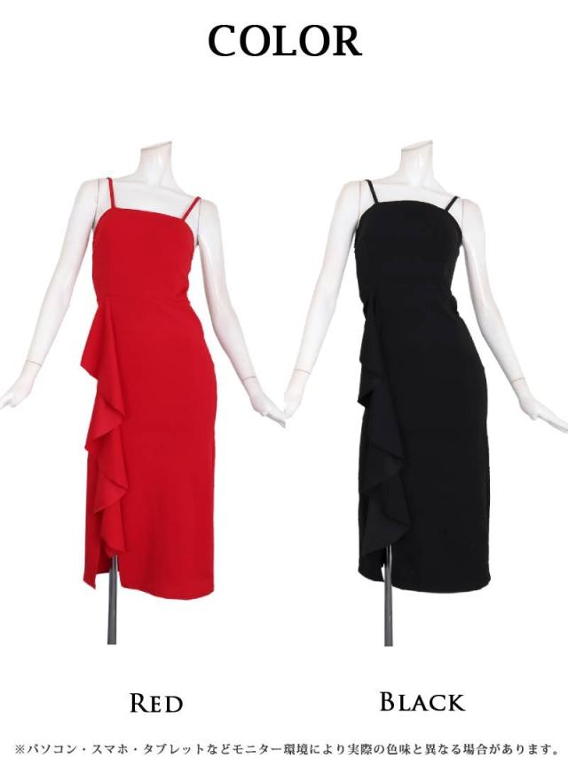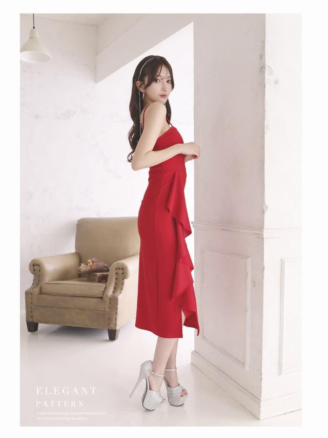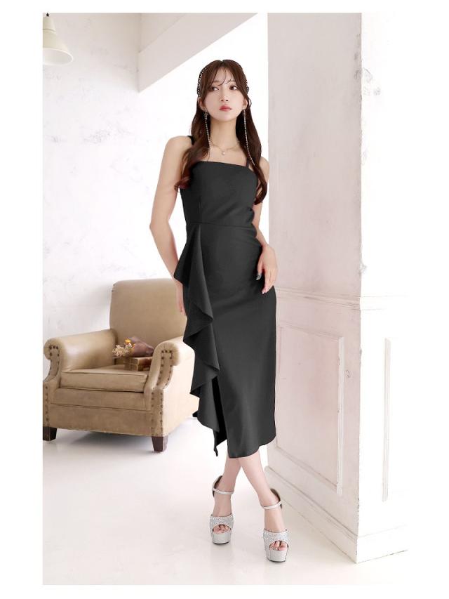 ロングドレス RyuyuChick 大き目フリル 体型カバー 切り替え ミディ丈 脚長効果 キャバ ドレス キャバドレス ロン