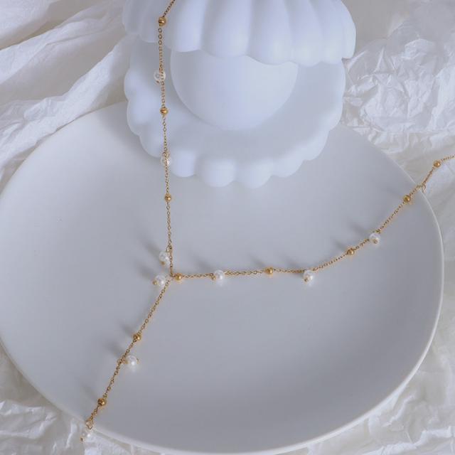 ネックレス 華奢 細め パール 真珠 Y字 つけっぱなしOK 金属アレルギー対応 チェーン サージカルステンレス 金アレ ゴールド シルバー レディース