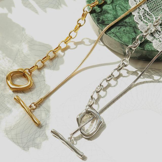 ロングネックレス スネークチェーン ネックレス Y字 サークル 丸 つけっぱなしOK 金属アレルギー対応 サージカルステンレス 金アレ ゴールド シルバー レディース