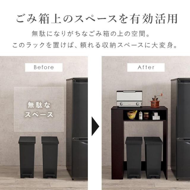 ゴミ箱上ラック キッチン 収納棚 キッチンボード レンジ台 幅71cm 高さ90.5cm オープンラック 耐荷重20kg