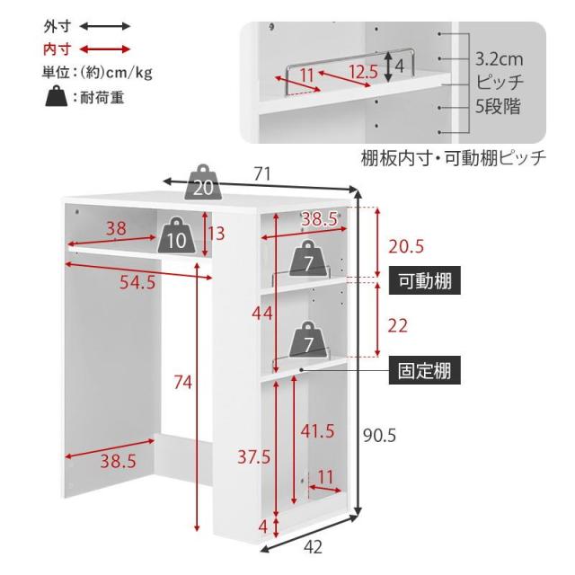 サイズ(約):幅71×奥行42×高さ90.5cm