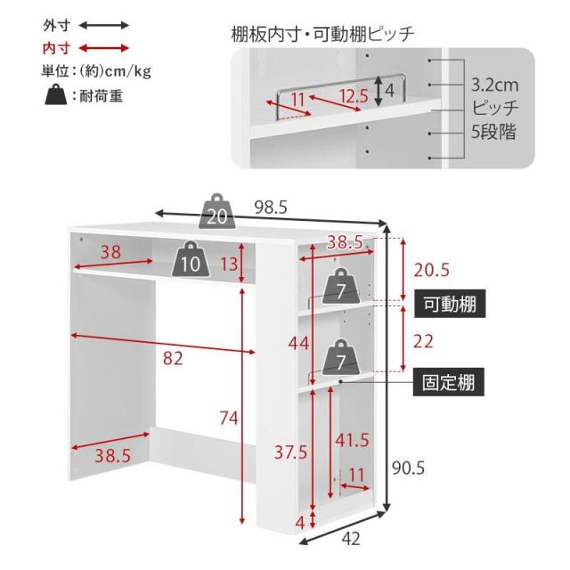 サイズ(約):幅98.5×奥行42×高さ90.5cm