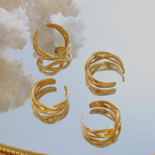 指輪 リング フリーサイズ 編込み 金属アレルギー対応 つけっぱなしOK 医療用 ステンレス サージカルステンレス 金アレ ゴールド シルバー レディース