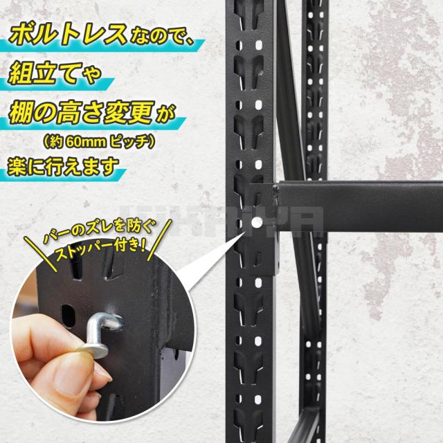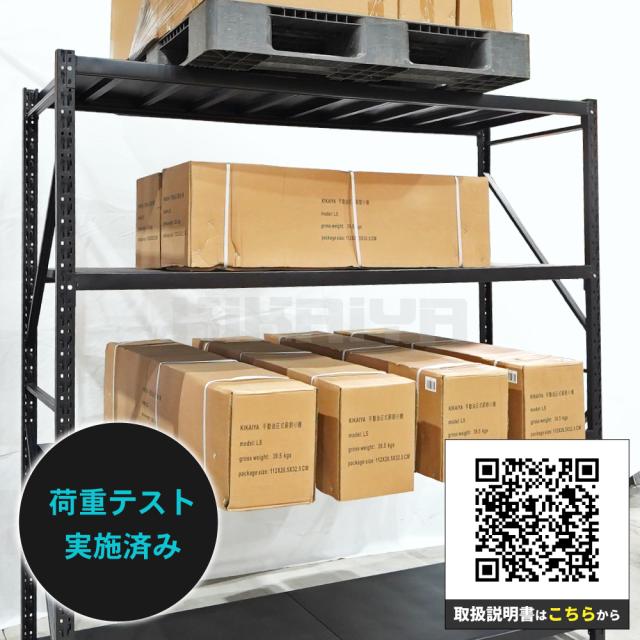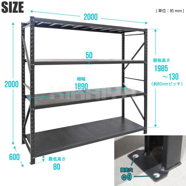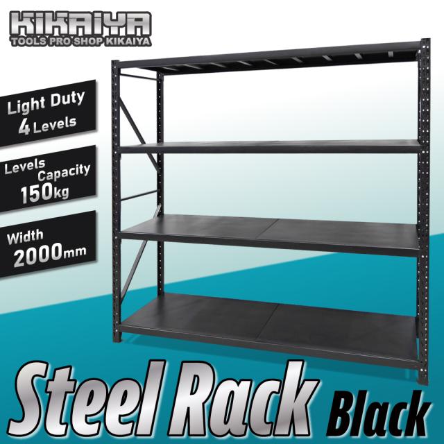 スチールラック 4段 ボルトレス ブラック 業務用 ワイド幅 軽量棚 収納棚 メタルラック 150kg 頑丈 高強度 幅200×奥行60×高さ200cm KIKAIYA