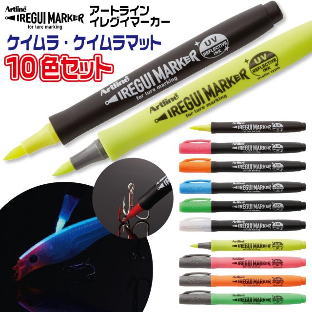 Artline IREGUI MARKER イレグイマーカー [ケイムラ・ケイムラマット10色セット] シヤチハタ ケイムラカラー 蛍光 ペン マーカー アートライン シャチハタ 釣り フィッシング 釣り具 ルアー 塗料 疑似餌 ハンドメイド
