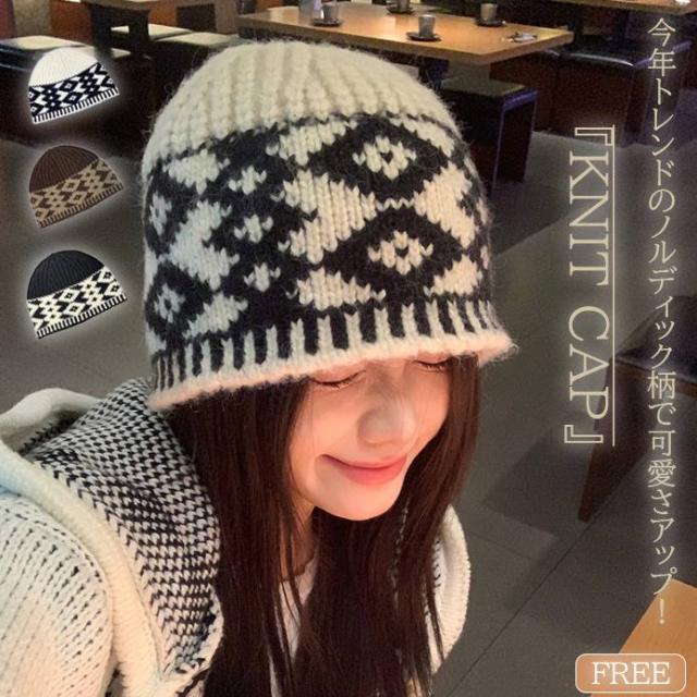 レディース 帽子 ニット ふわふわ 防寒 保温 小顔効果 かわいい ノルディック柄 オシャレ