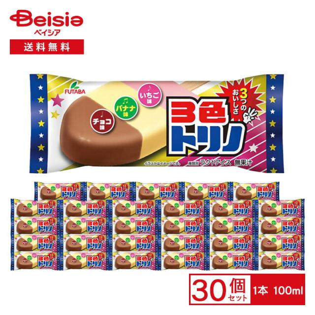 フタバ食品 3色トリノ 100ml×30本 | アイス 3色 チョコ味 バナナ味 いちご味 なつかしい味 アイスバー スイーツ デザート まとめ買い