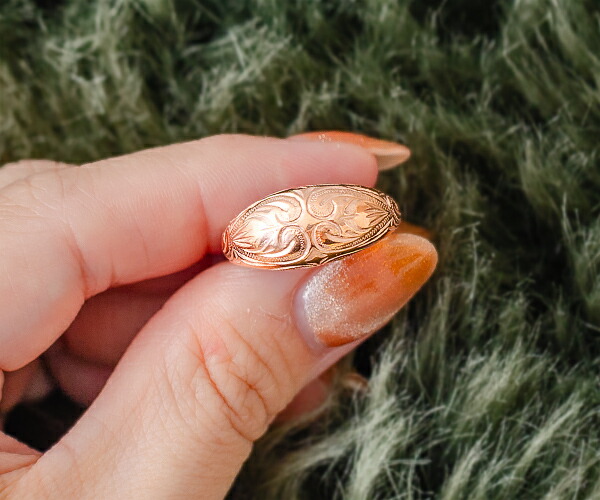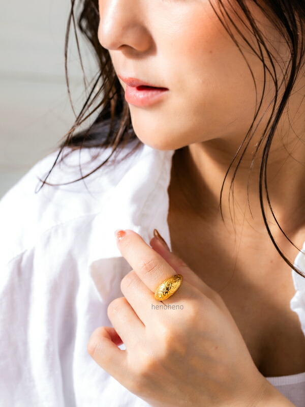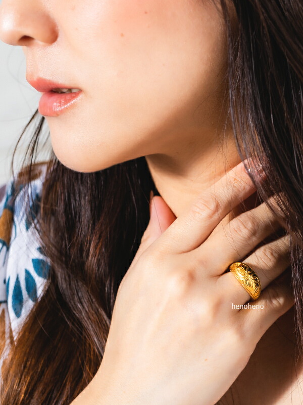 | ぷっくりとした丸みが印象的なドーム型デザインリング。 立体的な構造で全面にハワイアンの模様がデザインされています。 リングの正面は、ハートを描くような模様でどこか愛らしい雰囲気。 シンプルなようで個性的なシルエット、 ひと味違ったリングでオシャレのレパートリーを増やしちゃいましょう!! | ||||