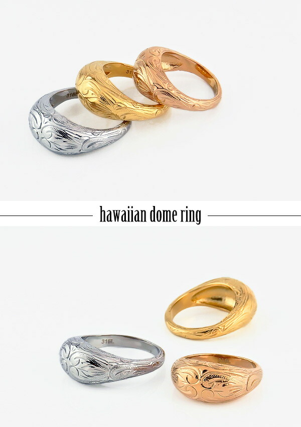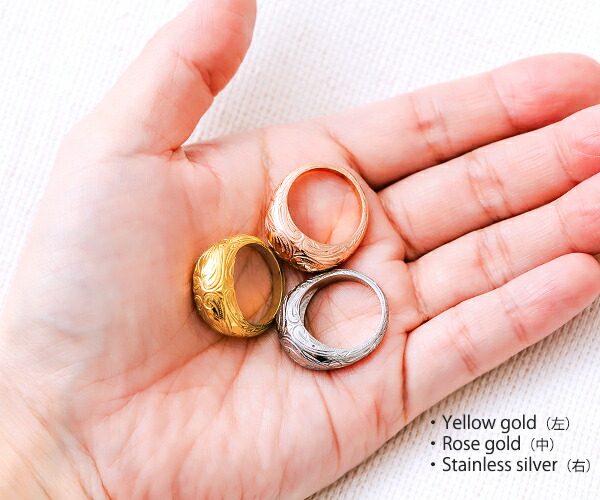 ハワイアンジュエリー ステンレス リング 指輪 女性 男性 人気 スクロール 親指 人差し指 中指 薬指 デザインリング プレゼント ギフト 男女兼用 ローズゴールド シルバー イエロー