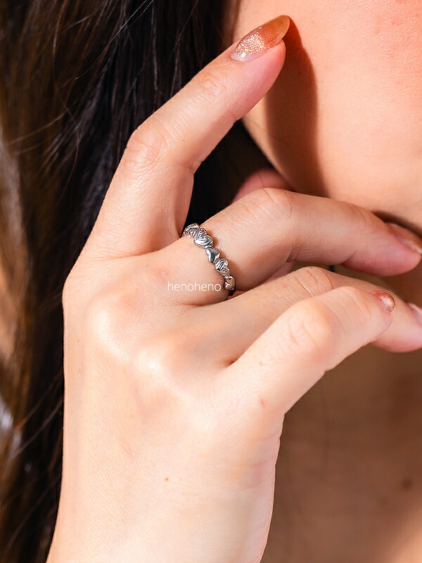 ハワイアンジュエリー リング レディース 指輪 ハート ハーフエタニティ かわいい 大人カワイイ 金属アレルギー サージカルステンレス スクロール おしゃれ かっこいい デザインリング 大きいサイズ クリスマス ブランド henoheno