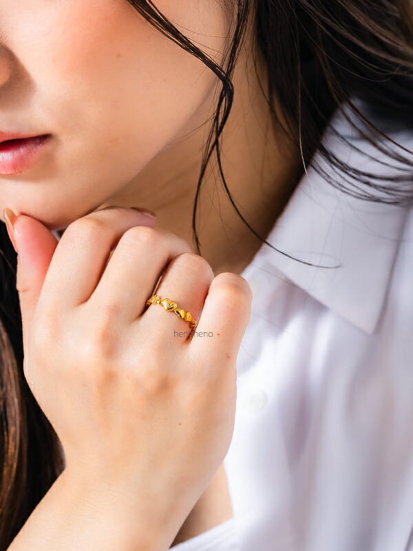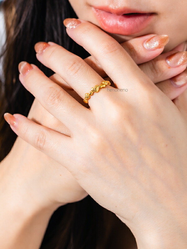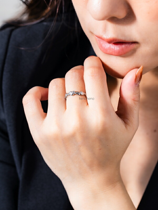 | 大小のハートが連なるハーフエタニティリング。 大きめのハートには「永遠」を意味するスクロールがさりげなくデザインされています。 小粒でふっくらしたハートのシルエットは 甘くなり過ぎず、重ねづけにもピッタリ。 さりげなくハートアイテムを取り入れられる大人ライクなデザインです。 ちょっとしたプレゼントや自分へのご褒美にもおススメ。 | ||||