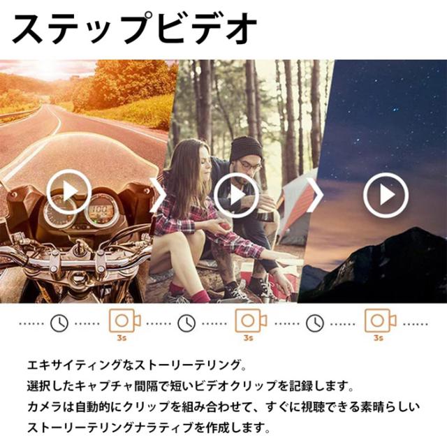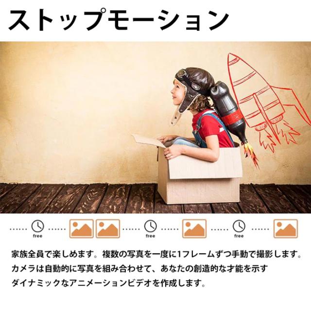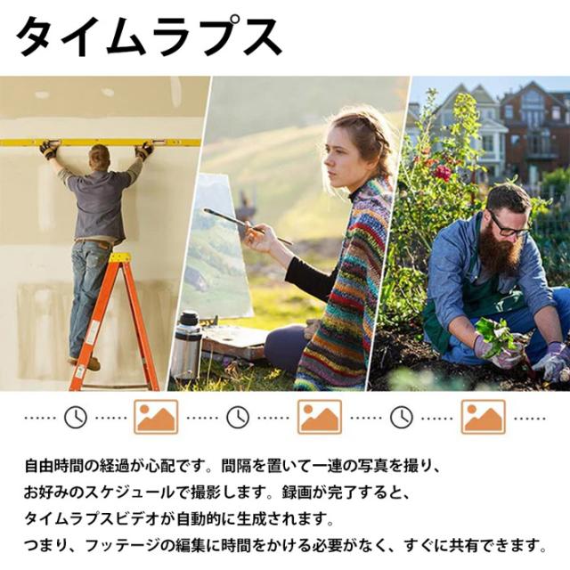 解像度は1080P(フルHD)に対応し、タイムラプス撮影以外にもストップモーション撮影やステップビデオ撮影機能も搭載しています。