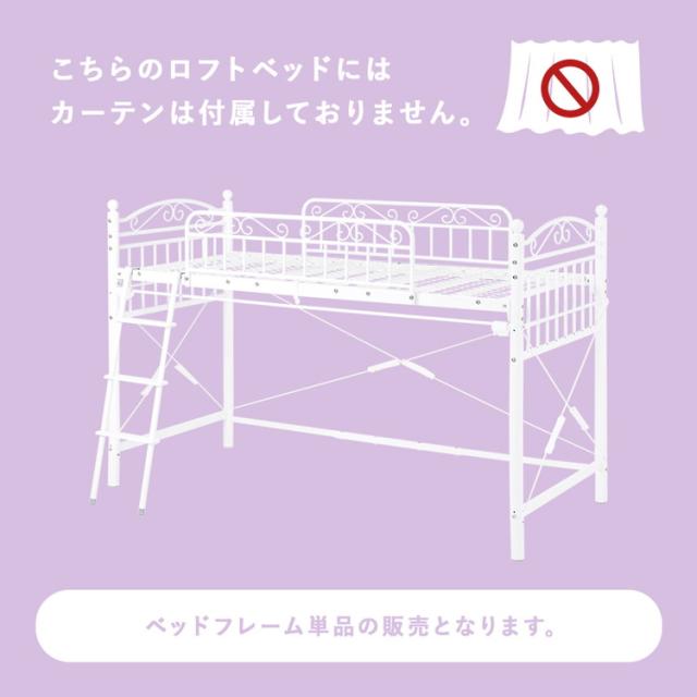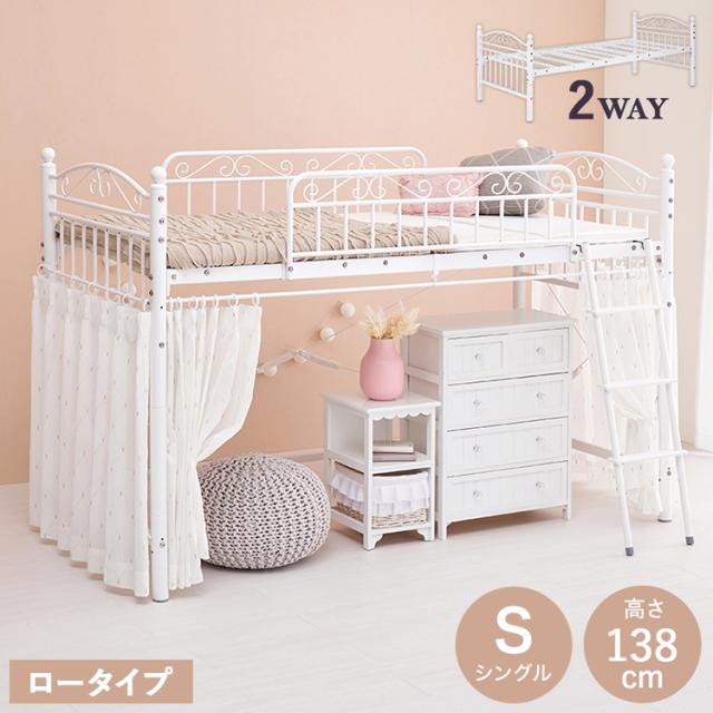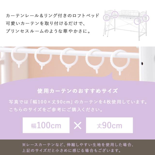 姫系 ロフトベッド シングル 高さ138cm ロータイプ プリンセスベッド プリンセスロフトベッド カーテン取付可能 白 ホワイト 可愛い かわいい 北欧 おしゃれ(代引不可)【送料無料】