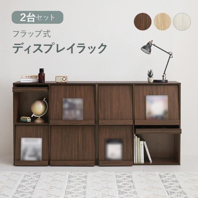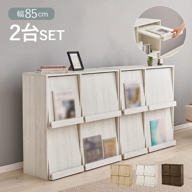 2台セット フラップ式 ディスプレイラック 連結可能 幅85 見せる収納×隠す収納 本棚 シェルフ マガジンラック A4 書類 ファイル CD DVD 収納 ラック カウンター下収納(代引不可)【送料無料】
