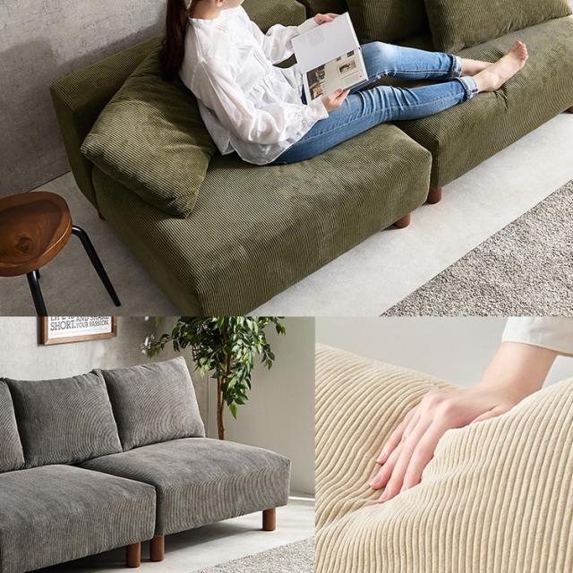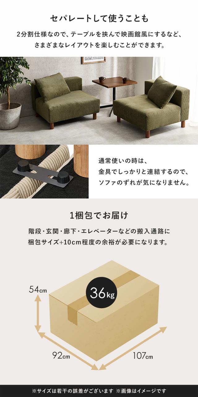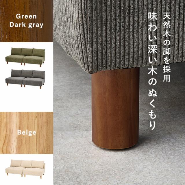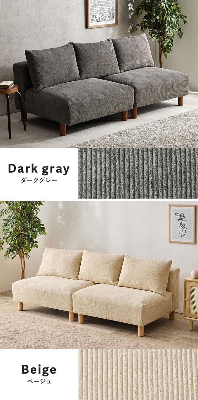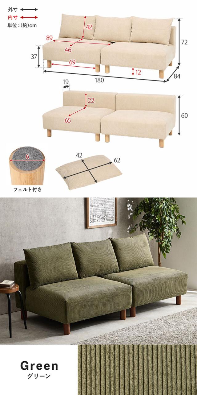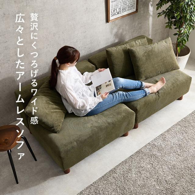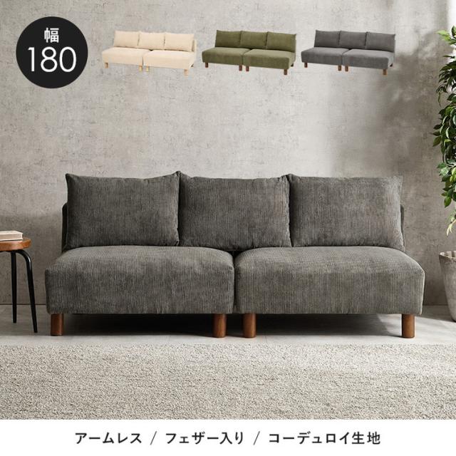 アームレスソファ 幅180 コーデュロイ ゆったり座面 ごろ寝ソファ フェザー入り クッション付き 分割式 セパレート ソファー 2P 2人掛け ローソファ 天然木脚(代引不可)【送料無料】