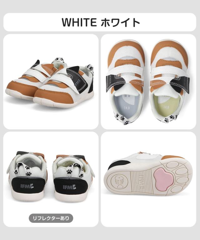 イフミー 子供靴 子供 べビー ベビーシューズ スニーカー 靴 12cm マジックテープ ベルクロ 男の子 女の子 保育園 幼稚園 新学期 入園準備 かわいい 運動靴 プレゼント グレー ベージュ ホワイト 白 ネコ ミケ トラ ハチワレ ワンベルトねこちゃんスニーカー 20-5305 IFME